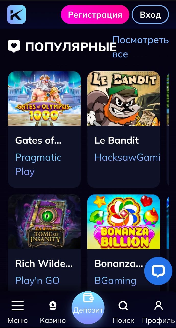 В нижней части мобильного клиента представлен онлайн чат для связи со службой поддержки. Вся информация четко распределена по разделам для удобства построения игрового процесса. Можно будет протестировать абсолютно любую игру, которая интересует в бесплатном режиме.