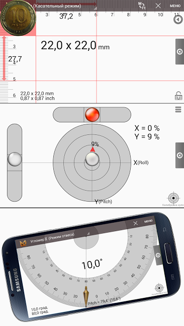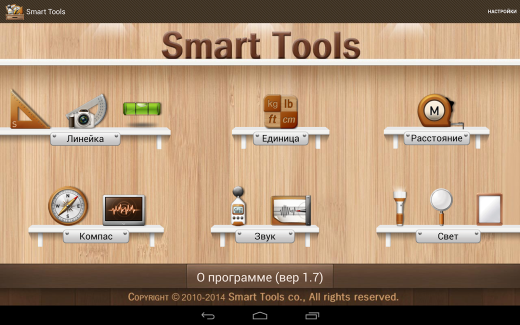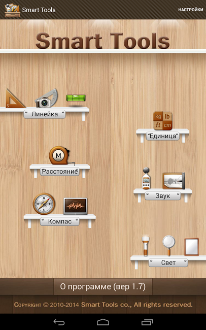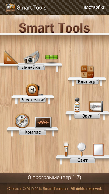 Еще один комплект профессиональных инструментов включает такие полезные функции, как компас, GPS и металлодетектор, а в четвертом наборе пользователю предлагаются удобные средства измерения звука – шумометр и виброметр. Также в Smart Tools присутствует удобный конвертер единиц измерения.