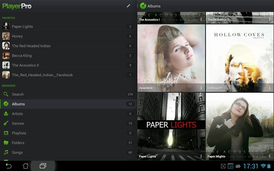 Современный видео и музыкальный плеер, который имеет быстрый и понятный интерфейс в совокупности с красивым дизайном и мощными параметрами - PlayerPro Music Player. Для плеера выпущено множество скинов и различных плагинов.