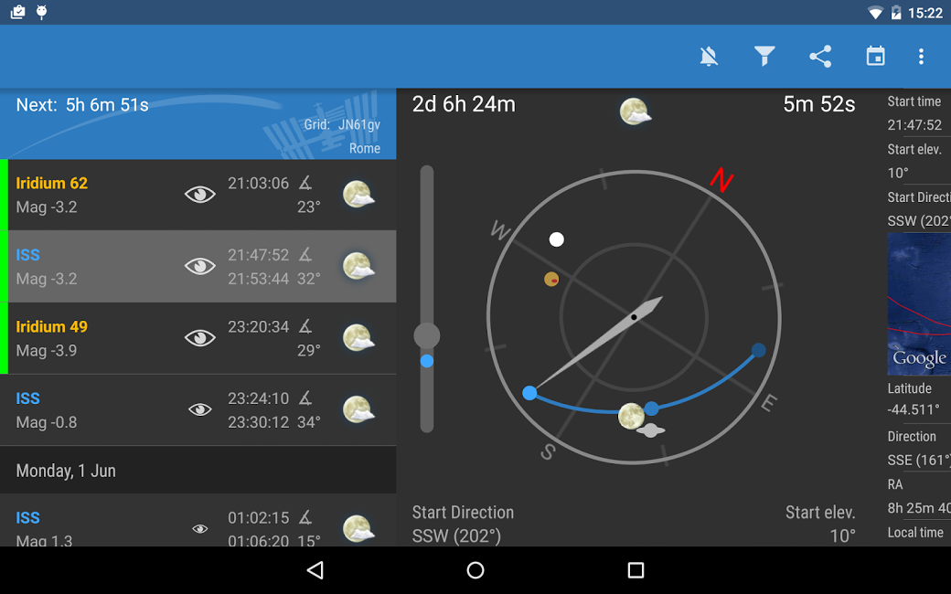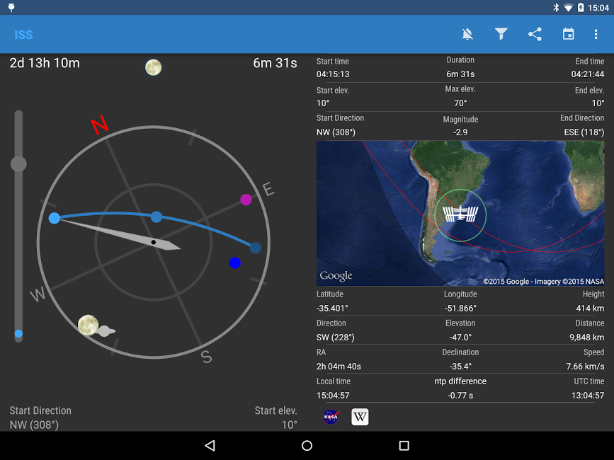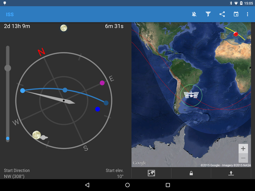 Теперь вы никогда не пропустите время, когда можно наблюдать за яркими вспышками спутников станции. Кроме того, программа позволит получить информацию о грядущих погодных условиях, поделиться точками наблюдения с другими при помощи электронной почты, Твиттера и других коммуникационных сервисов.